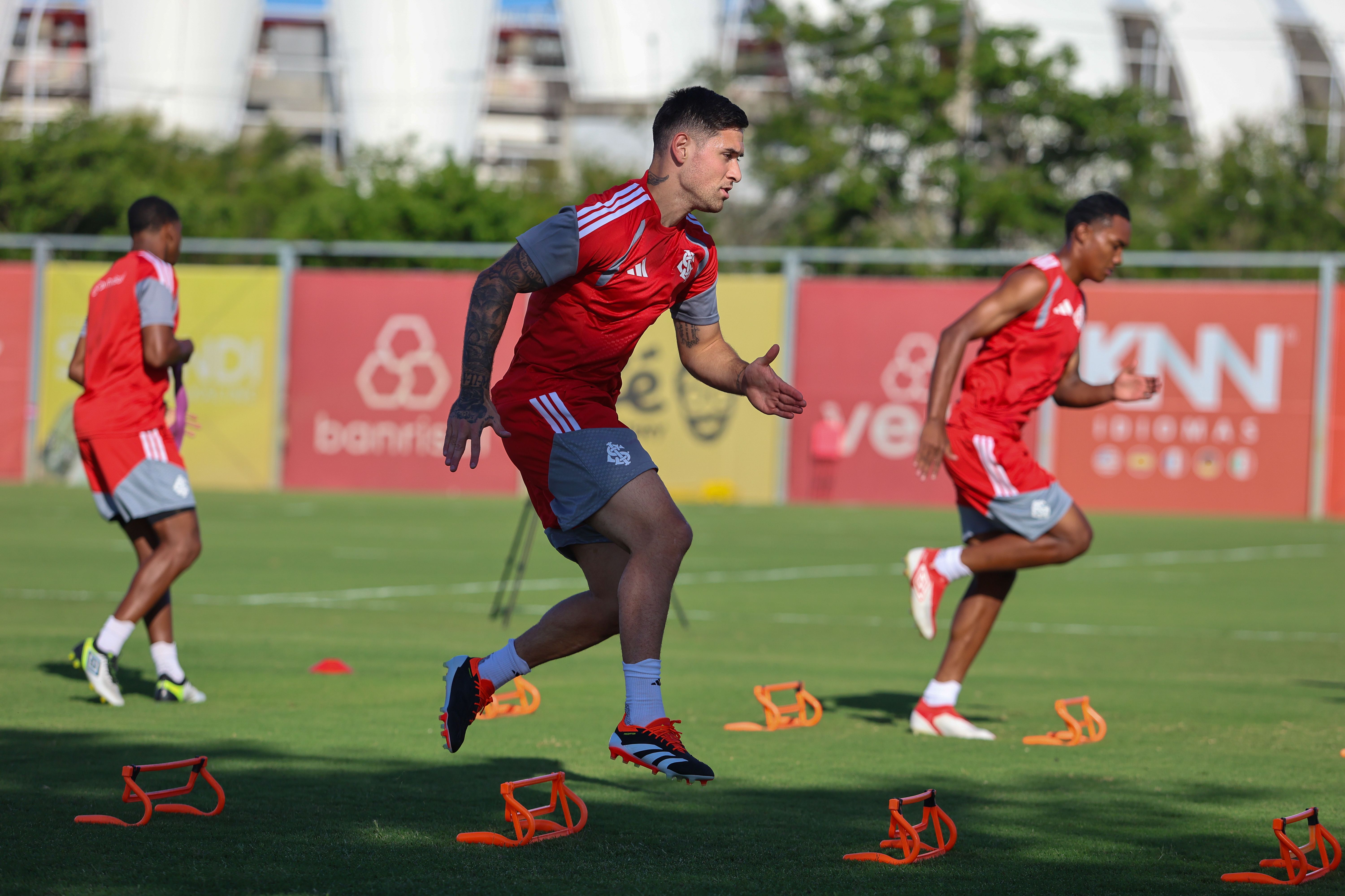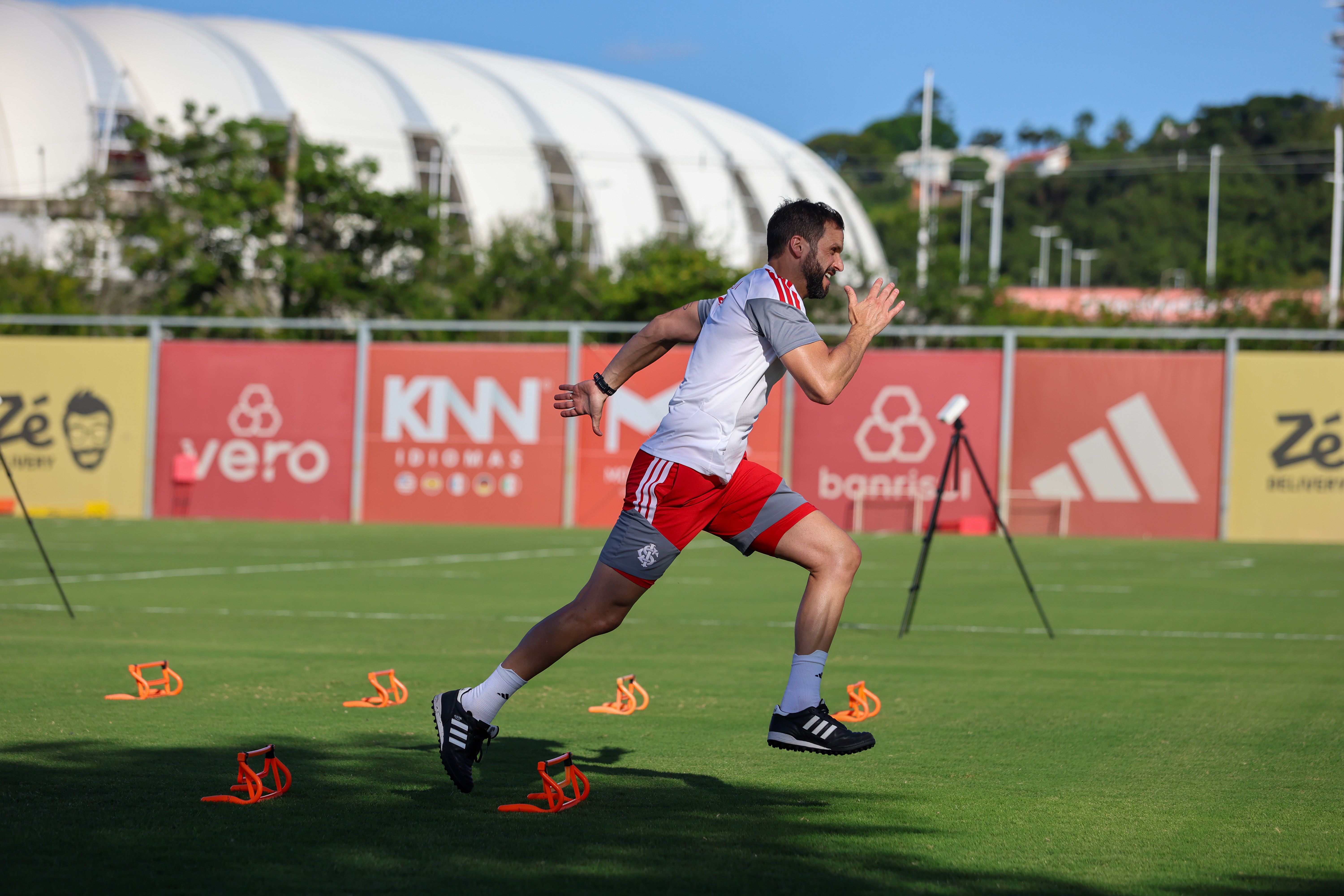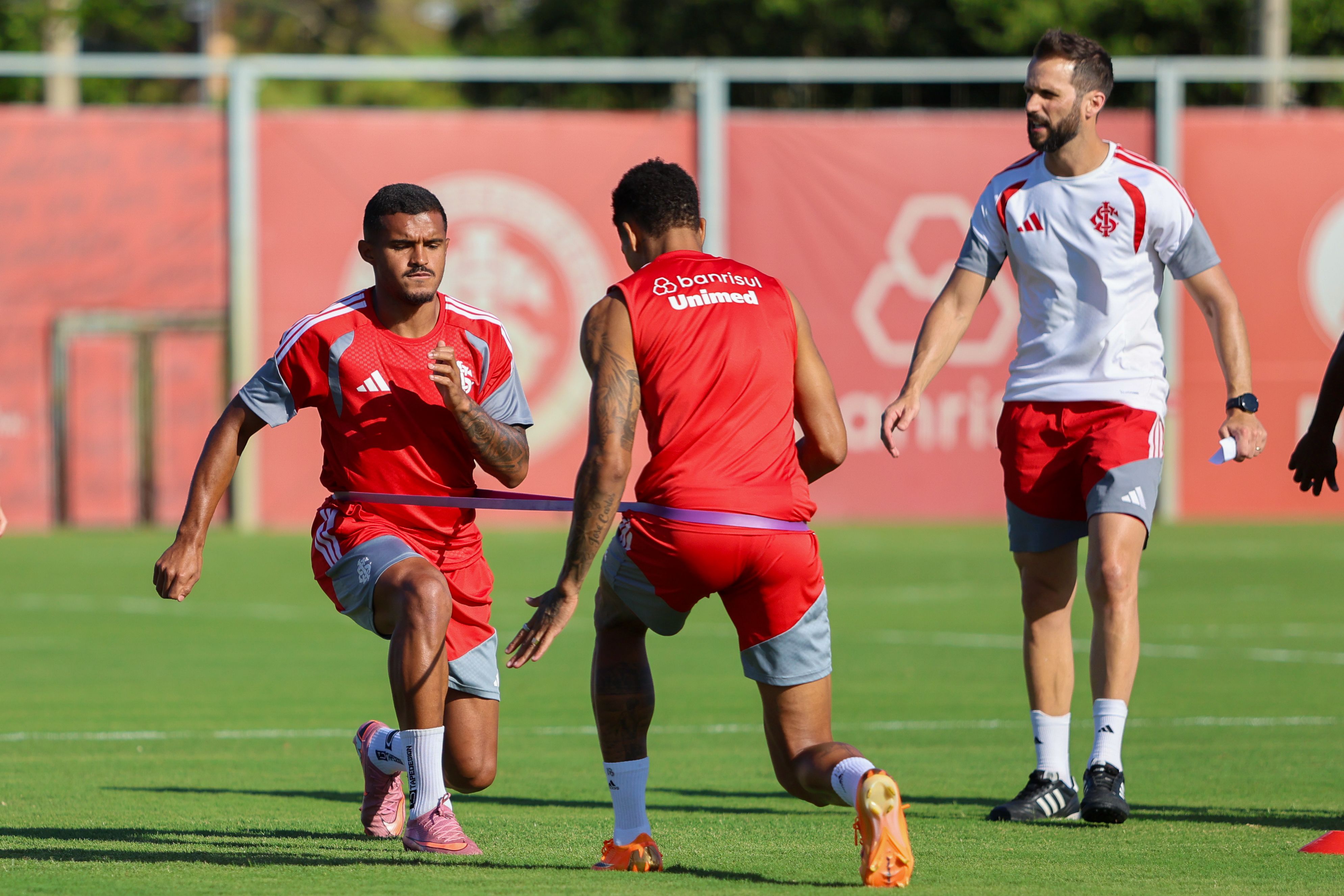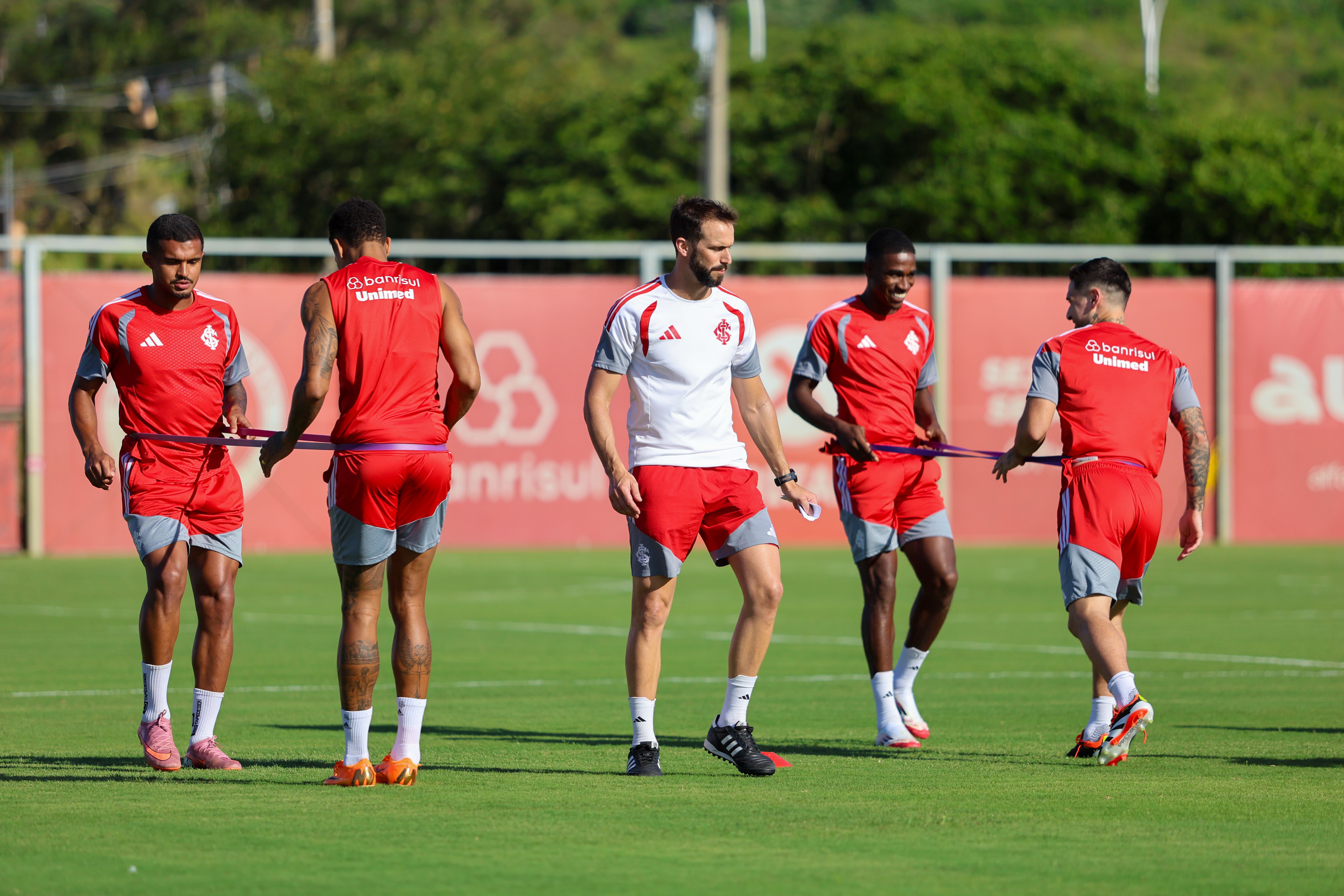 Os jogadores que iniciaram o jogo contra o time de Santa Maria fizeram atividades físicas e regenerativas na academia. Já a outra parte do grupo foi ao campo e fez trabalhos com bola. A novidade no treinamento foi a presença de Rodrigo Villagra. O volante foi apresentado oficialmente e participou normalmente do treino.