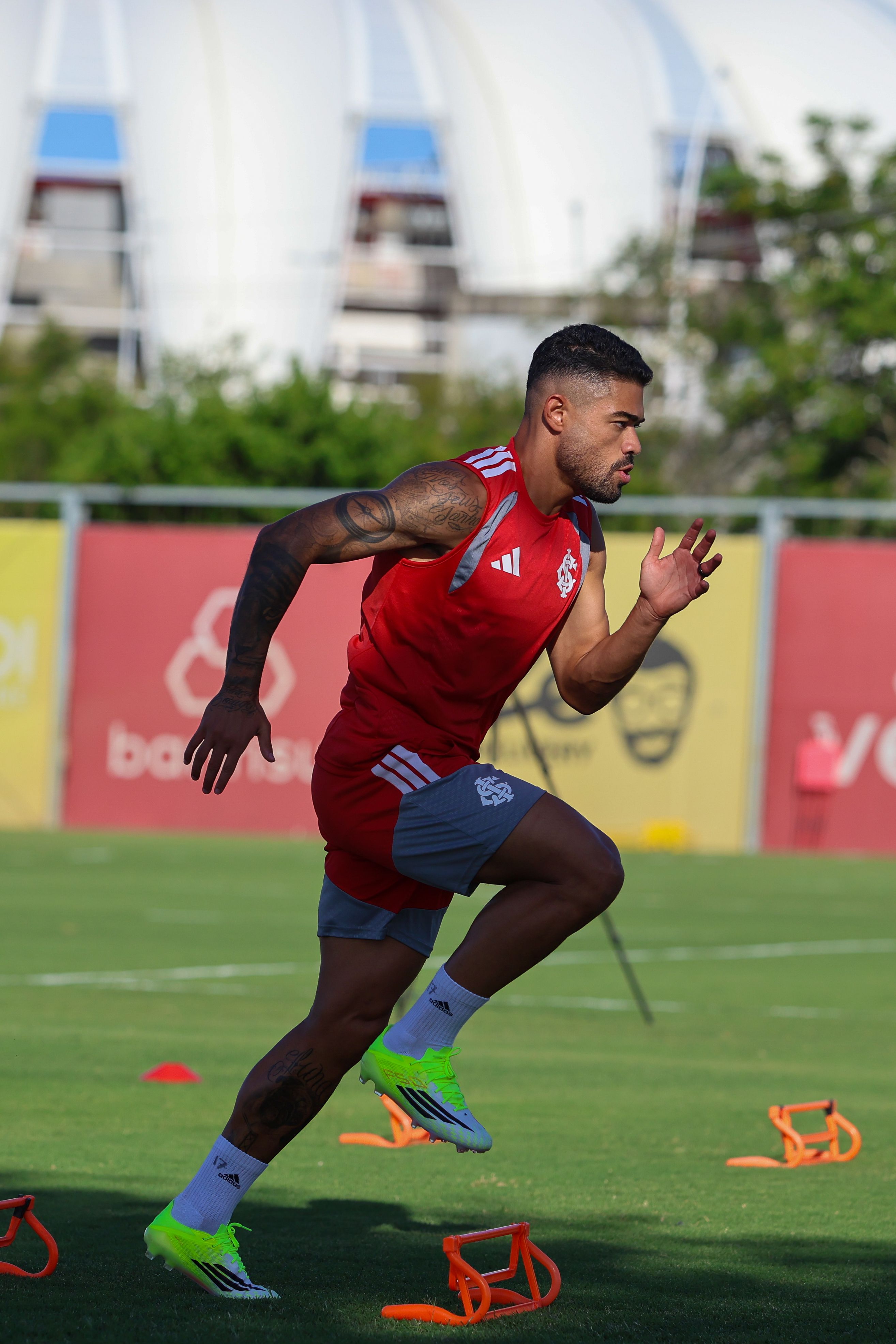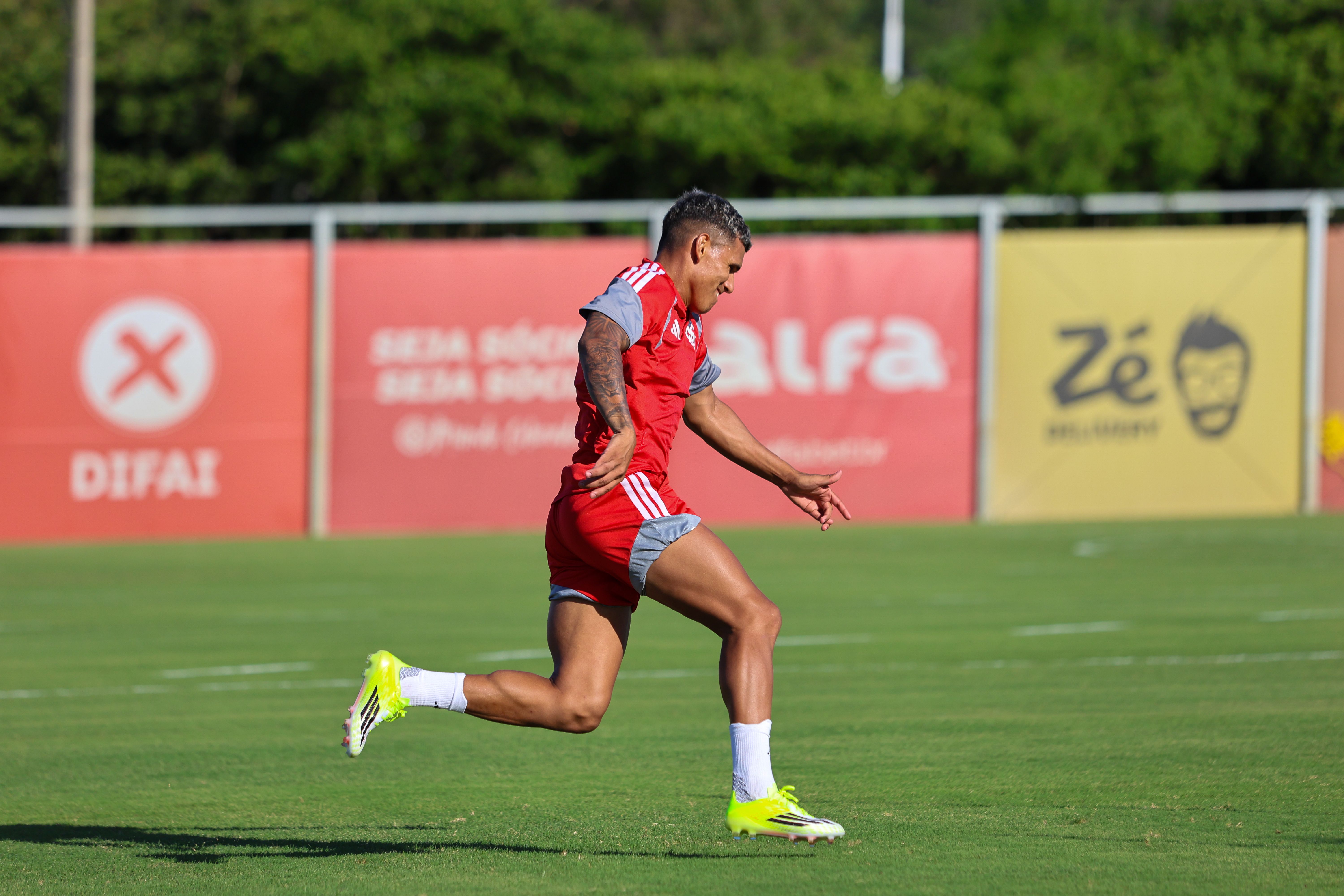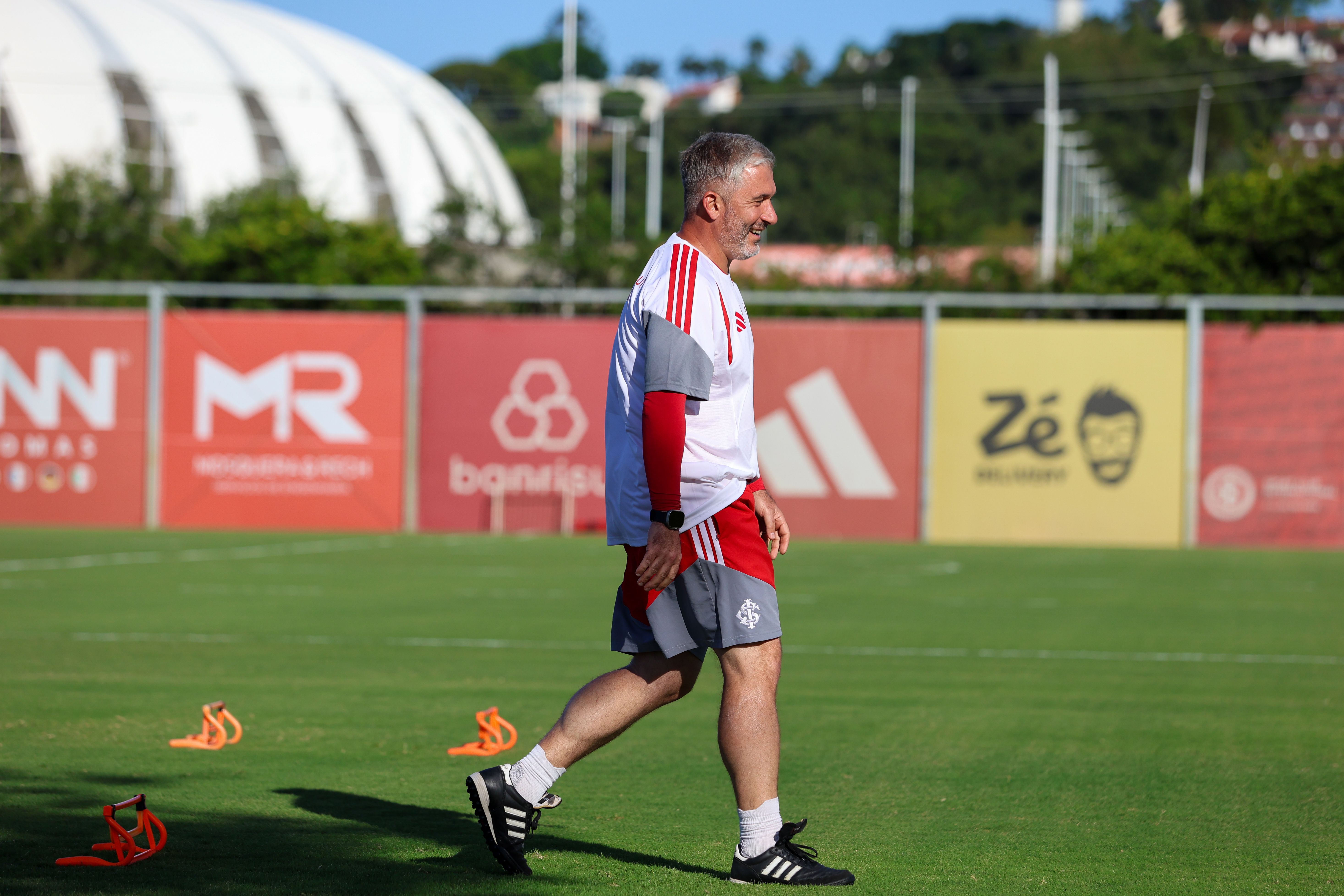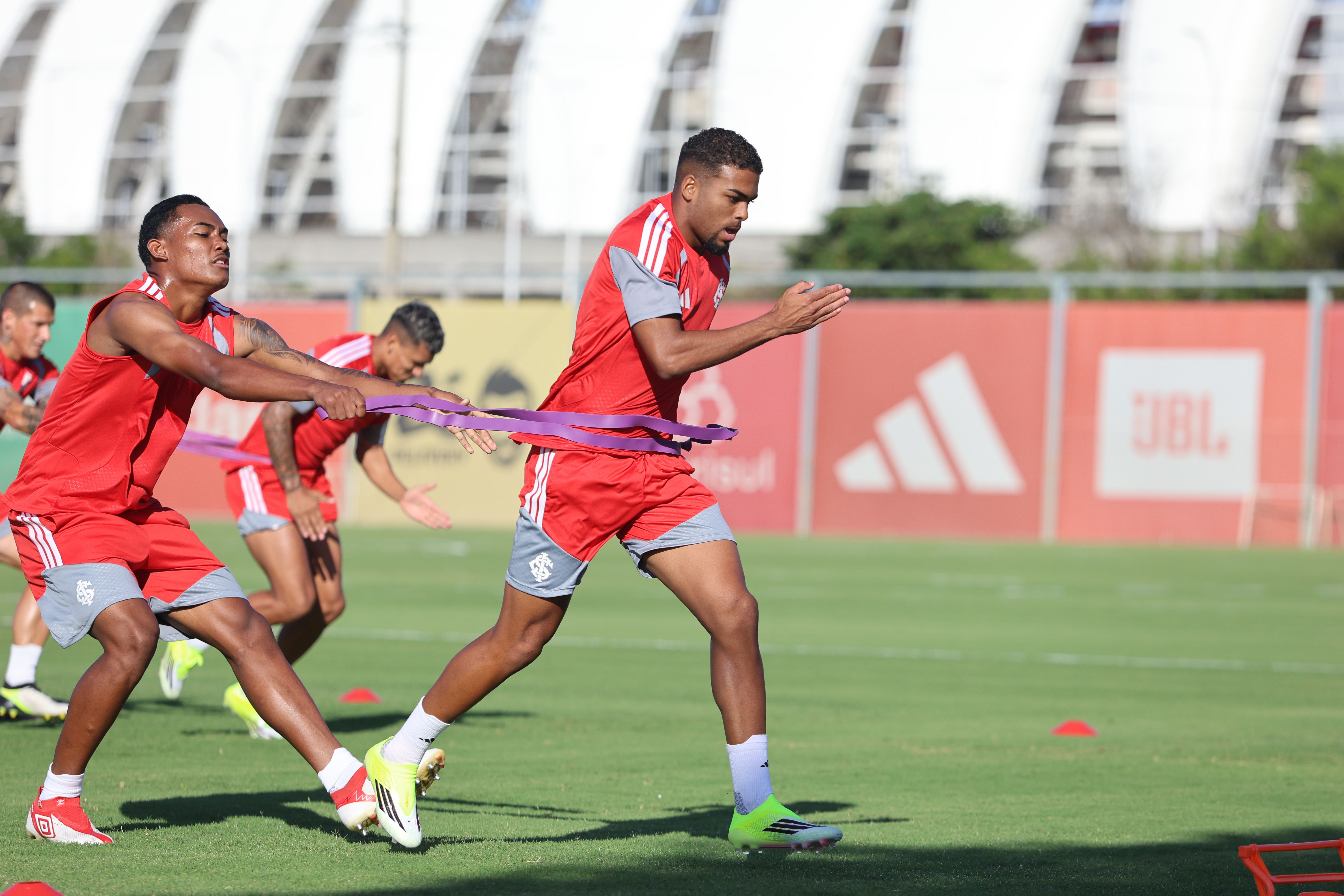 Os jogadores que iniciaram o jogo contra o time de Santa Maria fizeram atividades físicas e regenerativas na academia. Já a outra parte do grupo foi ao campo e fez trabalhos com bola. A novidade no treinamento foi a presença de Rodrigo Villagra. O volante foi apresentado oficialmente e participou normalmente do treino.