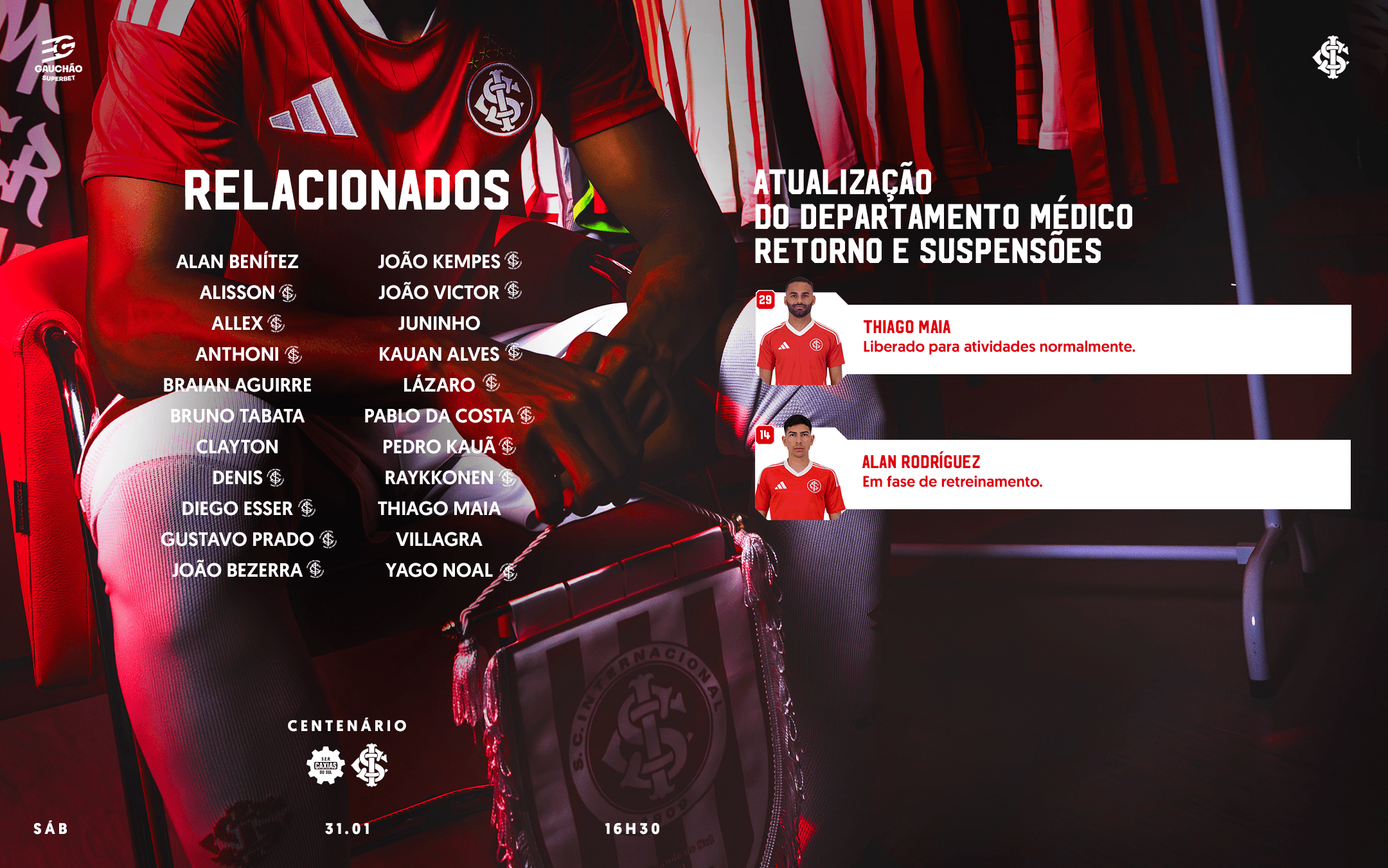 A nominata para o confronto diante do Caxias conta com 15 jogadores das categorias de base alvirrubras. Confira abaixo a lista completa dos relacionados: