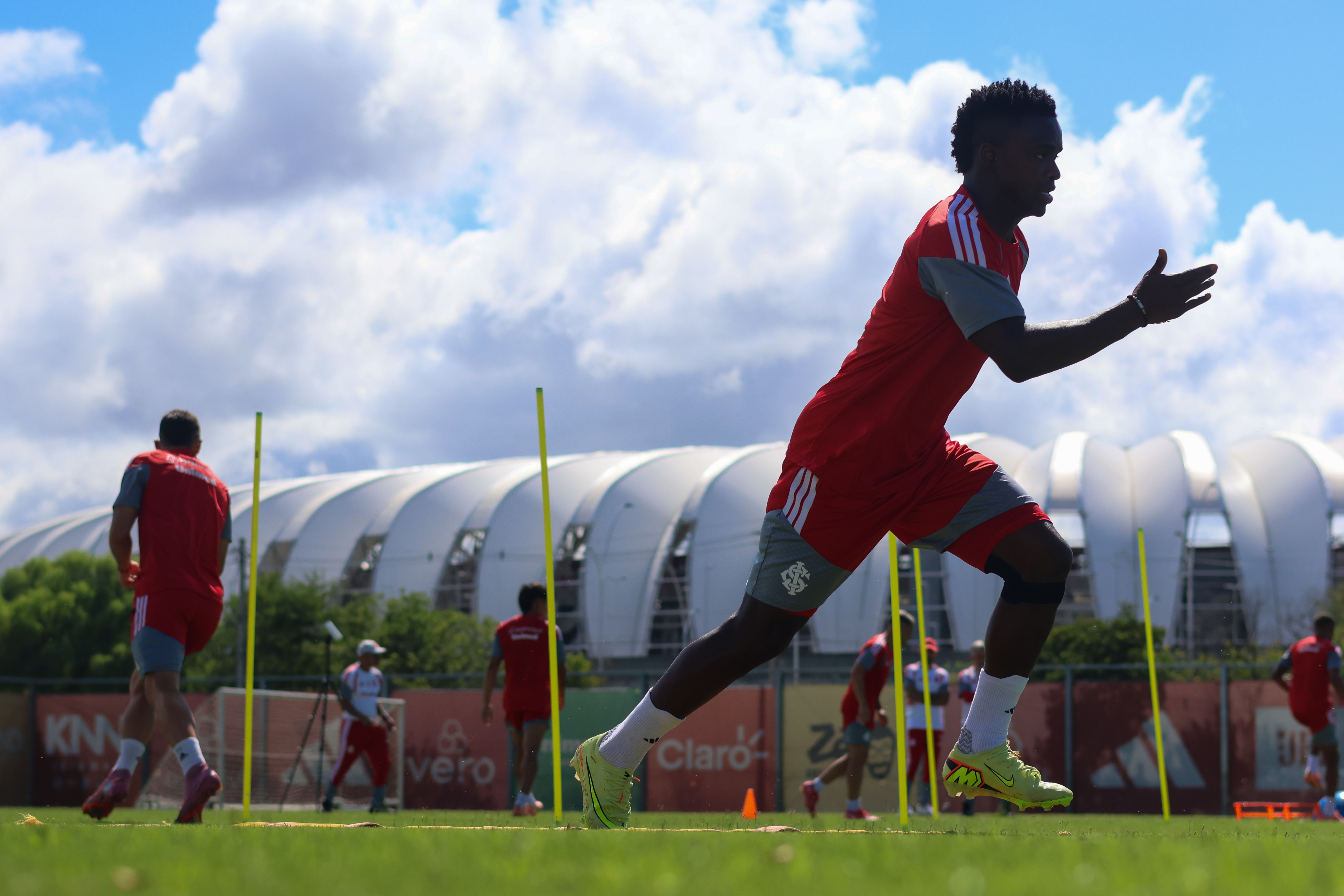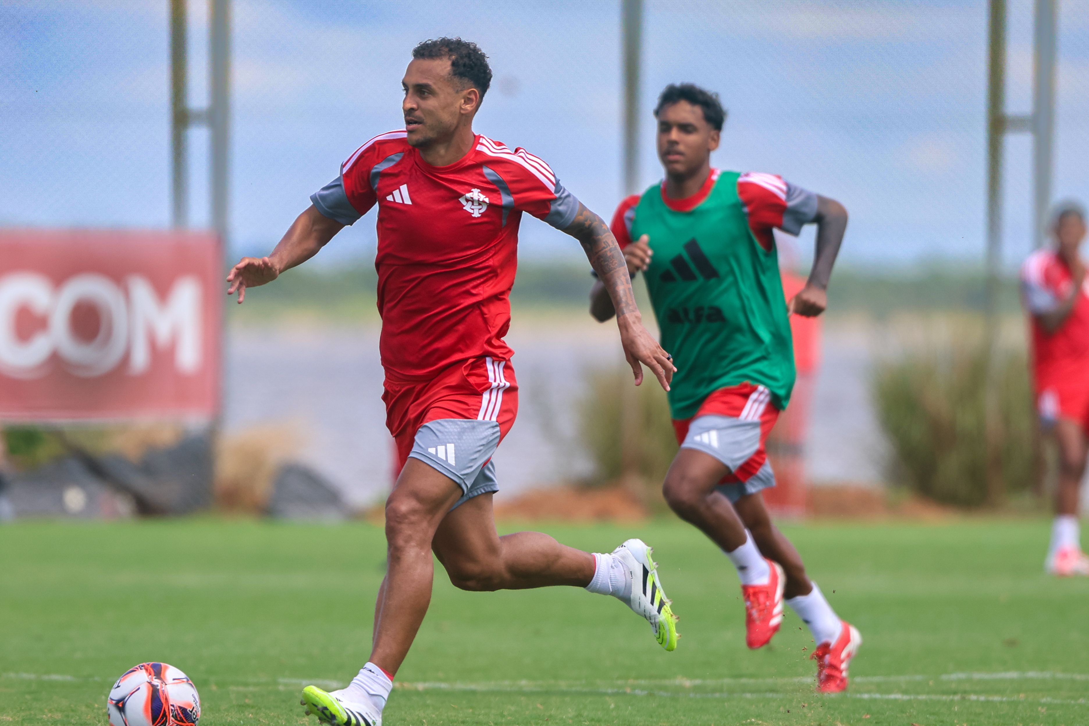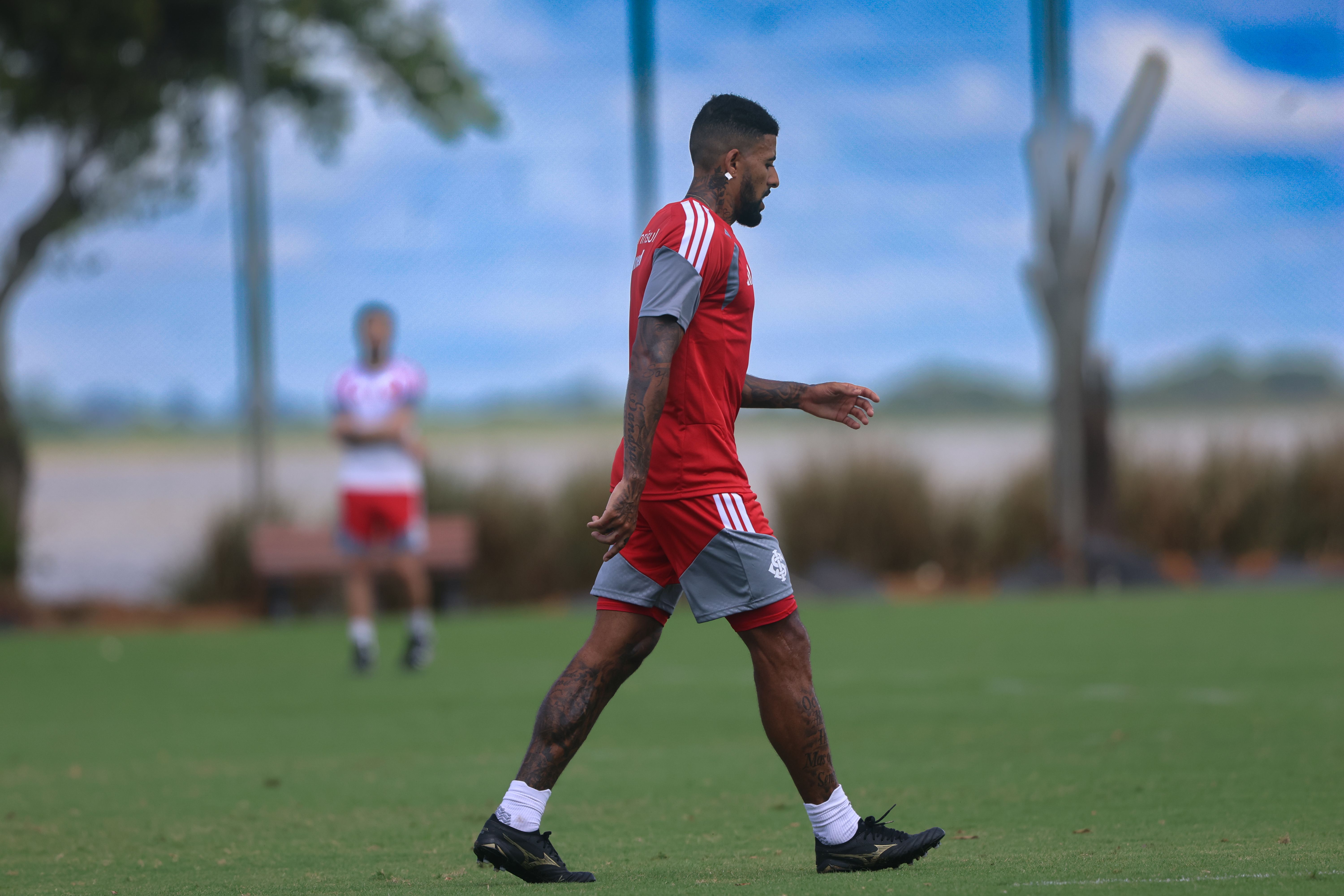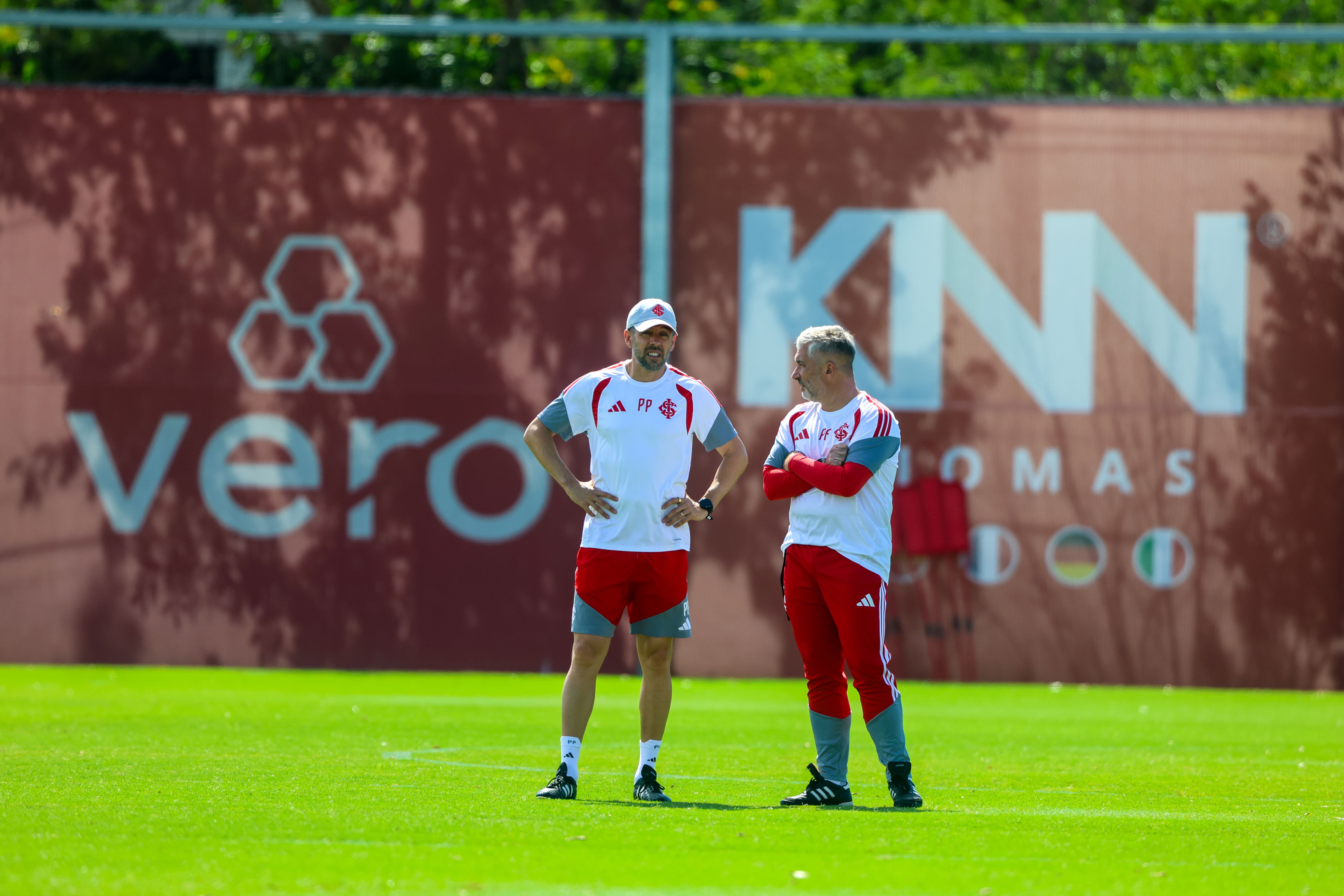 À tarde, os atletas foram ao campo e iniciaram com exercícios físicos. O trabalho seguiu com atividades de posse de bola. Para finalizar o dia, a comissão orientou um treinamento tático.