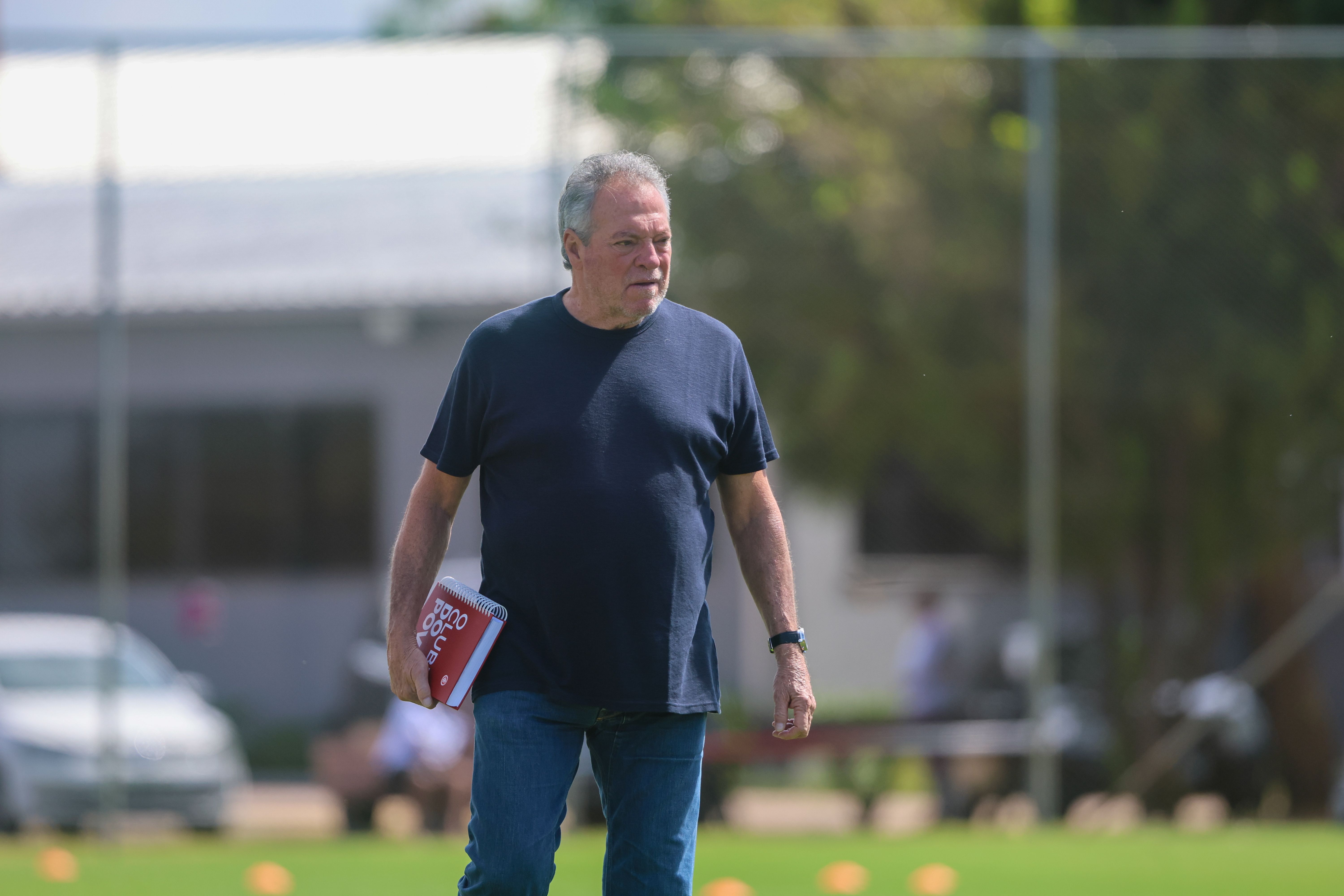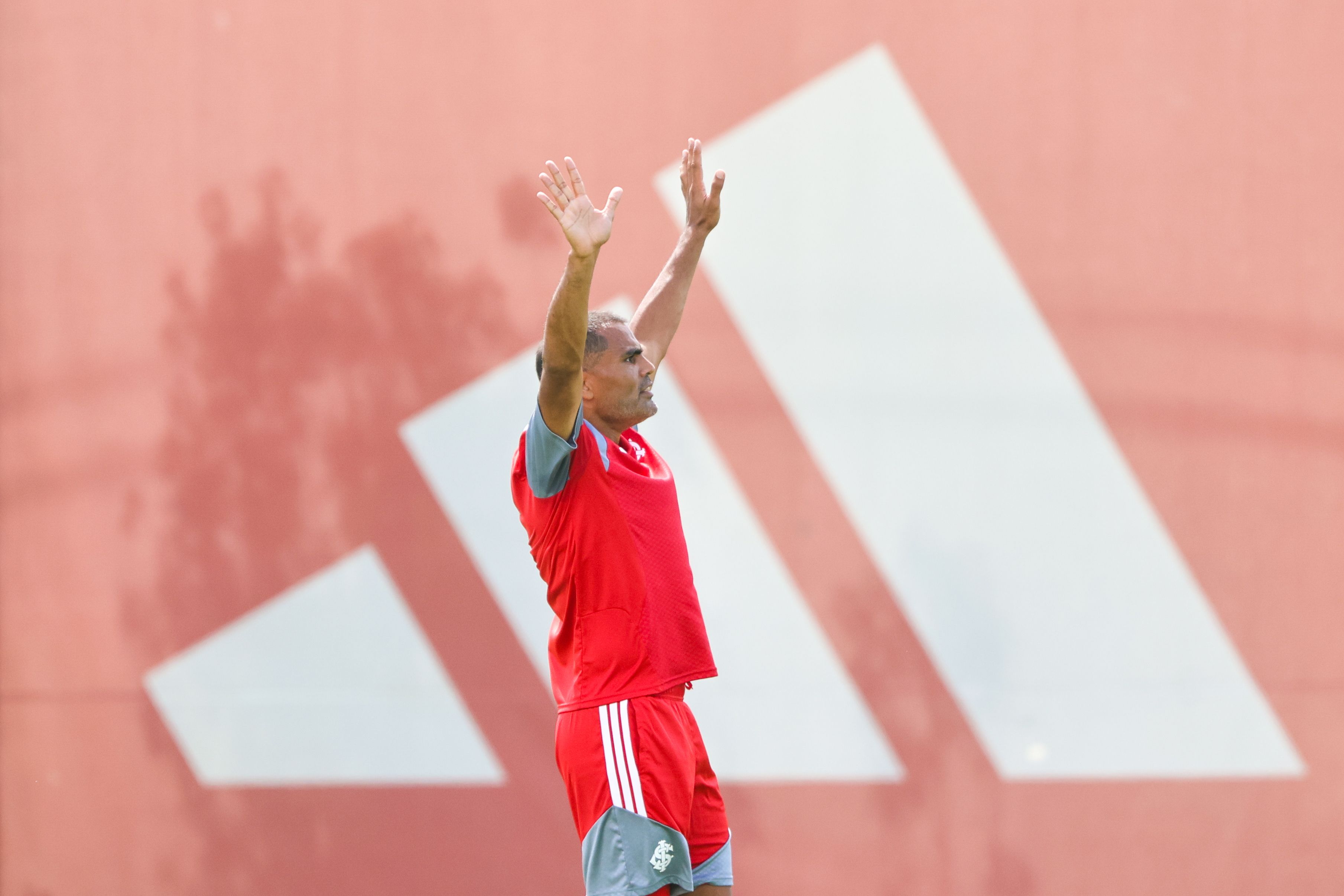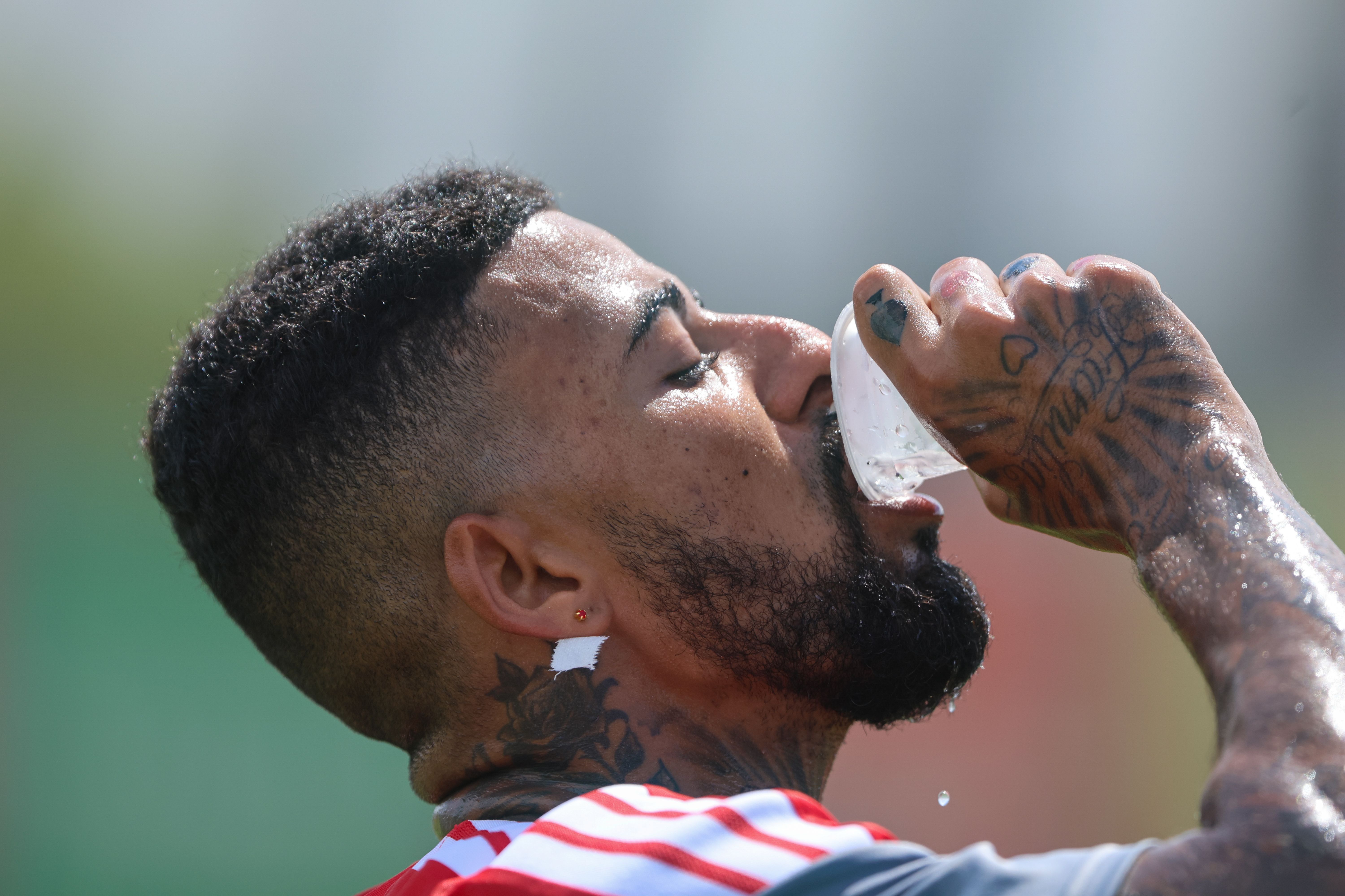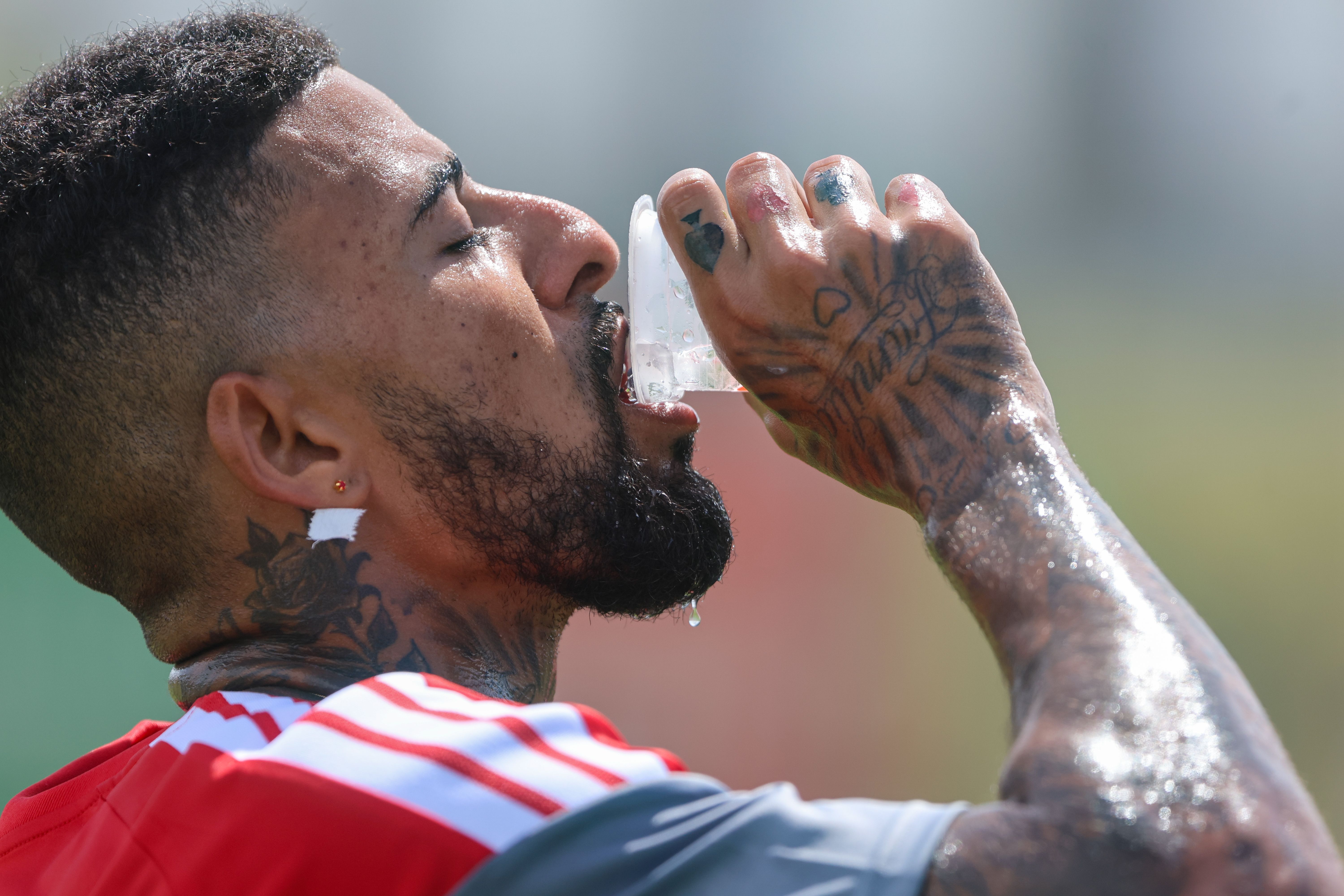 À tarde, os atletas foram ao campo e iniciaram com exercícios físicos. O trabalho seguiu com atividades de posse de bola. Para finalizar o dia, a comissão orientou um treinamento tático.